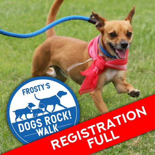 A small brown dog with a red bandana around its neck is running on a grassy field. The dog is wearing a blue leash attached to a harness. Below the dog, there is a red banner with white text that reads 'DOGS ROCK! WALK REGISTRATION FULL'. The banner also features a cartoon image of a dog with the text 'FROSTY'S DOGS RO... | Registration full for dog walk with pic of dog walking | 943d3a39beb9769bb34974d3e297266ba1798b449022861cd6991705d99bf150 | 000720976450 | 0 | 0 | 65 | 10 | 0 | 0 | |