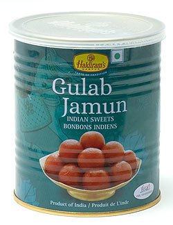 A can of Gulab Jamun Indian sweets is displayed against a white background. The can is green with a yellow label featuring the brand name 'Haldiram's' and the words 'Gulab Jamun'. The label also includes a picture of a bowl filled with the sweets and a decorative pattern. The can has a golden rim and a white lid. | Haldiram's Nagpur Gulab Jamun, 1kg | f92f486aee8cb9af2a864ab9cab02e9f045929fb881647a858e1bf0c9f771a8c | 000720976808 | 0 | 0 | 58 | 5 | 0 | 0 | |