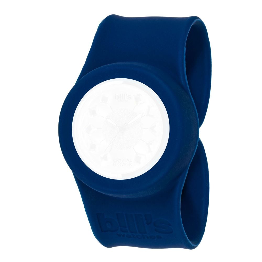 A blue wristwatch with a white face and black Roman numerals is displayed against a white background. The watch has a black strap and a small logo on the side. | Bills Watches: Classic Collection - Unicolour Slap Bands - Marine Blue | c6883ad022ea0a066a8e3c3a205e4d5a64927e720848a2b0ca54e5594d9032fa | 000720976873 | 0 | 0 | 30 | 11 | 0 | 0 | |