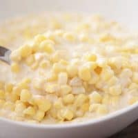 A bowl filled with a creamy corn porridge is on a wooden surface. The porridge has a smooth texture and a light yellow color. A spoon is partially inserted into the porridge, and the bowl is white. | Delicious Parmesan Cream Corn | 026e94cb21a15216bb9bed594498a9a01eb3b28de147811f020f025e924eb868 | 000720976903 | 0 | 0 | 37 | 4 | 0 | 0 | |