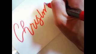 A close-up image of a person's hand holding a red marker, writing the word 'Chris' on a white piece of paper. The hand is positioned over the paper, with the marker tip touching the surface, creating a red line that forms the letters. The person's fingers are visible, and the red marker cap is also visible at the top o... | Christmas Card/Envelope Calligraphy | a80539d3873f8c976f06a3d3af957467bba8a2959e2c0e0dbe122108d7c961ee | 000720977291 | 0 | 0 | 62 | 3 | 0 | 0 | |