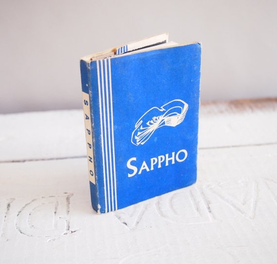 A blue book with a white cover featuring a stylized crab design and the word 'SAPPHO' in white letters is lying on a white surface with a faint word 'SAPPHO' written in the background. | Vintage Blue Pocket Sappho Poetry book...Little Humanist Library | 23072f9eb05f390f44c247f93b9d429c6856a85cf085761fdddd5a3c9bf43885 | 000720977271 | 0 | 0 | 34 | 8 | 0 | 0 | |