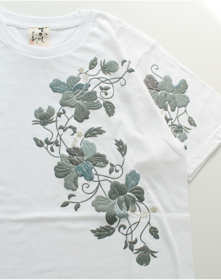 A white t-shirt with a detailed floral pattern on the left side is laid out on a white surface. The pattern features intricate designs with various shades of blue and green, creating a three-dimensional effect. The t-shirt has a tag on the upper left corner with Japanese characters. | Pine was properly worn by famous brand \xe2\x98\x86 once upon a time \xe2\x98\x86 Japanese pattern t-shirt \xe2\x98\x86 Arabesque \xe2\x98\x86 white / white | c46a2d8b31837a4df05abd410e242f53a3bc789d5ec7b0229217c63466402b6f | 000720977406 | 0 | 0 | 48 | 22 | 0 | 0 | |