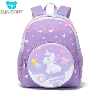 A purple backpack with a unicorn design on the front, surrounded by stars and hearts. The backpack has a small pocket with a star and a heart on it. The brand name 'SUN EIGHT' is visible on the top left corner. | baby backpacks preschool 3d cartoon kindergarten school bags waterproof nylon fashion baby bag 11 inch | d0fde1fcbda9877b33234e7082e221e450f549879f507473e5aa395095c4bec9 | 000720977673 | 0 | 0 | 41 | 15 | 0 | 0 | |