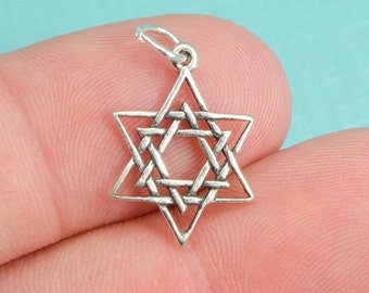 A silver Star of David pendant is held between a thumb and index finger. | Sterling Silver Interlaced Star Of David Bracelet Charm, Pendant, Jewelry, .925 Silver, DIY Bracelet, (C094) | f350accae77221046f0c106fc6b2f0631803a8ed5d955aa2e5b7cb1976c80f8c | 000720977727 | 0 | 0 | 14 | 15 | 0 | 0 | |