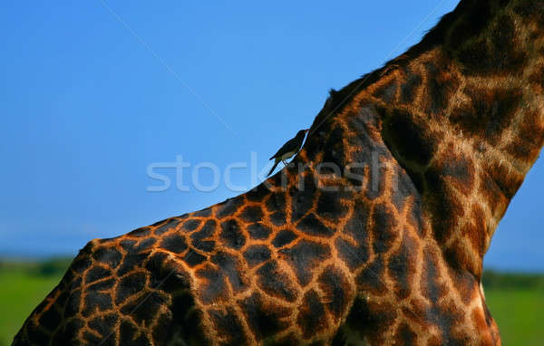 The first image shows the back of a giraffe's neck against a clear blue sky. The giraffe's skin has a distinctive pattern of irregularly shaped spots. There is a small insect, possibly a fly, resting on the giraffe's neck. | Close-up on Giraffe skin Stock photo \xc2\xa9 Anna_Om | 7d41db1c5bbd5b9f00458d8b84d9644fea996634044a1eaebdf583333cc7cdc1 | 000720977798 | 0 | 0 | 39 | 8 | 0 | 0 | |