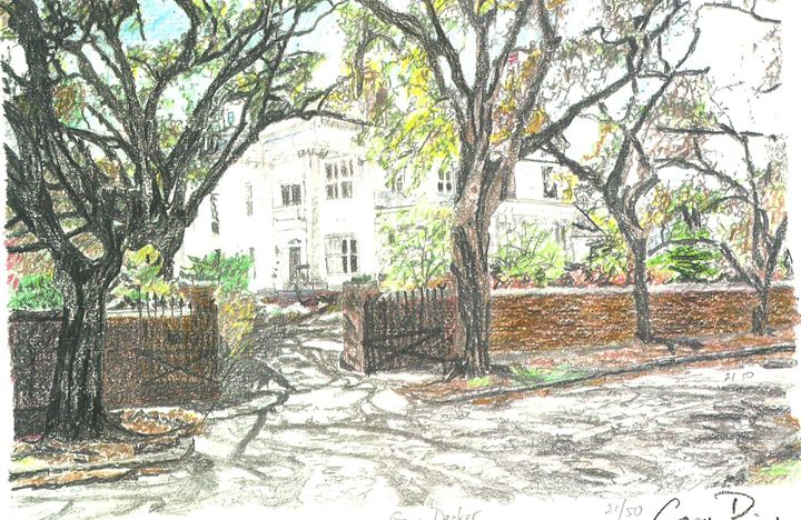 A colored pencil drawing of a large house surrounded by trees, with a detailed depiction of the house's architecture and the surrounding foliage. The drawing is rich in color, with the house appearing in shades of white and beige, and the trees in various shades of green and brown. The sky is a light blue, and the grou... | Wise House, Wilmington, UNCW Alumni - drawings by GaryD | 68ec26816ee9874408e65e06346891d01cb27180edb9c548b47f7dca157e5ebe | 000720979721 | 0 | 0 | 81 | 9 | 0 | 0 | |