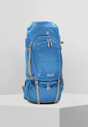 A blue backpack with a grey trim is displayed against a white background. The backpack has multiple compartments, including a laptop sleeve on the back, and features a logo on the front. It has a top handle and multiple straps for securing items. | DENALI 65 - Sac de trekking - poseidon blue | f5a9c9faa397c3f5731780ff879424d5161a541ac35a3026a25b5ef96010ea6e | 000720979814 | 0 | 0 | 43 | 9 | 0 | 0 | |
