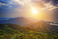 A scenic view of a mountain range with lush greenery under a sky with scattered clouds and a bright sun shining through. | Beautiful summer landscape in the mountains with the sun at dawn - stock photo | 8aaffb7394adae2a85dceee30c72756fb87f3d7f0c2ec93f22518fcd1634a9d0 | 000720979934 | 0 | 0 | 22 | 14 | 0 | 0 | |