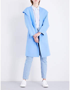 A person is standing in front of a white background wearing a blue oversized coat, a white shirt, blue jeans, and white sneakers. | Claudie Pierlot Ladies Light Blue Traditional Oversized Single-Breasted Wool Coat | c837b06fdd517672525ae4ae078215f9a4594f2bda086e843cc62d8eed9b5923 | 000720980614 | 0 | 0 | 23 | 10 | 0 | 0 | |