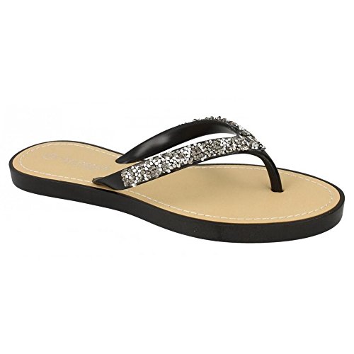 A pair of black and beige sandals with a glittery embellishment on the toe strap. | Savannah Women's Thong Sandals Light Blue f8illcAS | e907c222603aeac8e0698b9c5e000e7da80aa6e06bf88582fda6d47b3e5880ee | 000720980721 | 0 | 0 | 15 | 7 | 0 | 0 | |