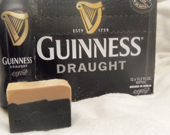 A Guinness beer bottle is placed on a white surface with a small piece of chocolate next to it. The bottle has a black label with gold lettering and a gold harp emblem. The label also features the words 'EST 1759' and 'Guinness Draught'. The chocolate piece is rectangular with a smooth surface and a brown color. | FREE Giftwrapping 2 Beer Soaps made with Guinness approx 4oz each Made to look like a pint of Beer with a head. Both Gift wrapped.Man Guy | 90ba7f1d4a88531df277b94e11afe7b82cf96722a2945243bafde60dead6760c | 000720980784 | 0 | 0 | 57 | 26 | 0 | 0 | |