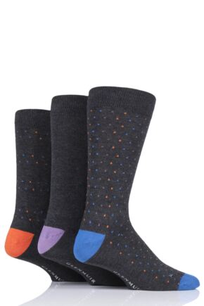 A set of four socks is displayed against a white background. The socks are arranged in a staggered manner, with the leftmost sock being black with small orange dots, the second sock from the left being black with small blue dots, the third sock being black with small red dots, and the rightmost sock being black with sm... | Mens 3 Pair Glenmuir Pin Dot Bamboo Socks Charcoal 6-11 Mens | f4d60093894038512bf1df1609b0c322d22bde78196eeb40bf59ae0f63f82aa8 | 000720980817 | 0 | 0 | 87 | 11 | 0 | 0 | |