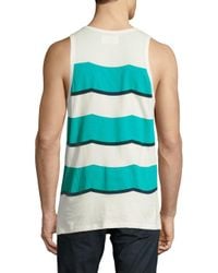 A man is wearing a sleeveless top with a striped pattern in shades of blue and white. | Sol Angeles - Blue Printed Sleeveless Tee for Men - Lyst | defc8f03459ad56fde04b10cfb2e29c9937b7d86f688f95e46c8a95d26d12311 | 000720981899 | 0 | 0 | 17 | 11 | 0 | 0 | |