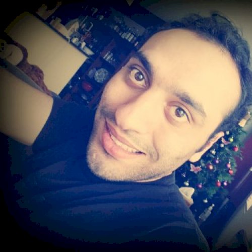 A man with dark hair and a beard is smiling at the camera. He is wearing a dark shirt and is standing in front of a Christmas tree decorated with red and green ornaments. The room has a cozy atmosphere with a dining table and chairs in the background, and a few bottles and a wine glass on the table. | Amer - Sydney: High educated lebanese man, friendly and patien... | 98d70ba03d8675e1a0f2adf1bbfb1a688193ae43e341aec5126d3c42ba9dca17 | 000720981789 | 0 | 0 | 60 | 10 | 0 | 0 | |