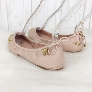 A pair of pink ballet shoes with ribbons tied in bows is displayed against a white background. The shoes have a shiny, reflective surface and are positioned with the toes pointing upwards. | kate spade Shoes - Kate Spade Pink \xe2\x80\x98Just Married\xe2\x80\x99 Gwen Flats | 9cd1f88b9d4b694b6a151832a92b2e620a50d4c67be470302fb7d299a0dfa301 | 000720981985 | 0 | 0 | 32 | 11 | 0 | 0 | |