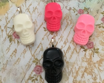 A collection of four skull-shaped keychains is displayed on a floral background. The keychains are arranged in a vertical line, with each skull having a different color: white, pink, black, and another black. The white skull is on the left, the pink skull is in the middle, the first black skull is below the pink one, a... | Skull Pendant Necklace Goth Punk | 8839b7ddc6c49437ccb53db34b9e77aa40d82cab52fdedd603a0184efe776842 | 000720981680 | 0 | 0 | 66 | 5 | 0 | 0 | |