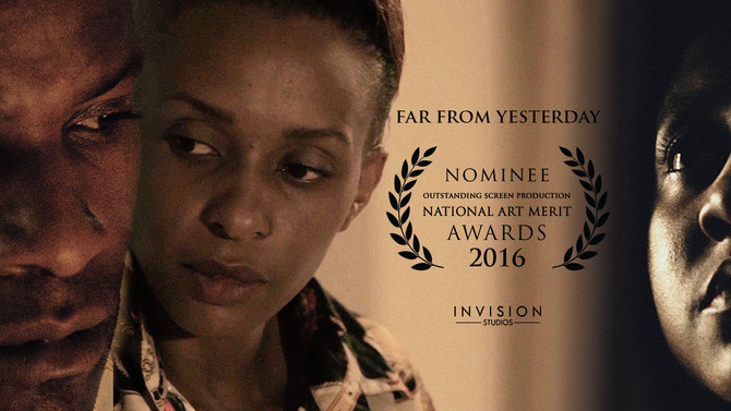 A close-up of a woman's face with a nomination award for 'Far From Yesterday' in the background. The award is in a dark frame with a laurel wreath design and the text 'NOMINEE' and 'RECOGNIZING GRIEF PRODUCTION IN NATIONAL ART MERIT AWARDS 2016' is visible. The woman is wearing a colorful shirt with a pattern of flower... | Far From Yesterday Nominated for 2016 NAMA Award | 9bcf86fe37c15015c2f5a463ccfca23417cb584de0c670d6ed74a74f1ec2b0bc | 000720982423 | 0 | 0 | 59 | 8 | 0 | 0 | |