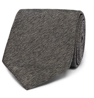 A textured grey tie with a subtle pattern is displayed against a white background. The tie is neatly folded at the bottom, showcasing its length and the way it is knotted at the top. | Brioni 8cm M\xc3\xa9lange Herringbone Silk Tie | 2cd4f0139cda729151f9dd37d569fcd9fd2f662b90b9c708447fb03aba5d9950 | 000720983034 | 0 | 0 | 34 | 6 | 0 | 0 | |