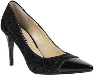 A pair of black high-heeled shoes with a textured pattern on the toe and a shiny black finish on the rest of the shoe. The shoes have a pointed toe, a thin heel, and a strap that wraps around the ankle. The brand name 'K' is visible on the side of the shoe. | J. Renee Marvela Cap Toe Pump | 8150af6a2e4e0035ccf1b4c9bd2d70b4f62ba7c00b275366af90a1e84f9972ed | 000720983026 | 0 | 0 | 53 | 6 | 0 | 0 | |