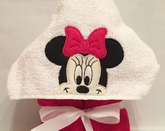A white towel with a Mickey Mouse design is draped over a white surface. The towel has a red bow on top and a red ribbon tied at the bottom. The Mickey Mouse design features a black ear and eye, with a white face and a red bow on the head. | Minnie Mouse Hooded Towel | 5995b56d34babdeb09260bddcb4bad511c60066002e8cbc996c697b80ca93d87 | 000720982863 | 0 | 0 | 51 | 4 | 0 | 0 | |