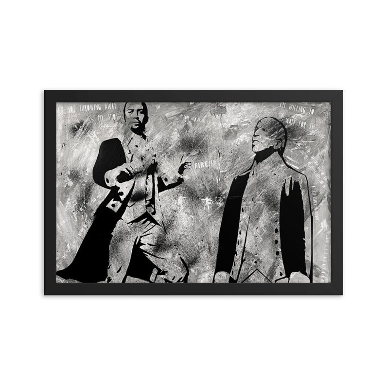 A black and white image of two figures, one walking and the other standing, both wearing colonial-style clothing. The image has a textured, almost abstract background that resembles a canvas with brush strokes. The figures are depicted in a monochromatic tone, with the standing figure on the right and the walking figur... | Alexander Hamilton Framed Wall Art \\u2022 Musical Theatre Wall Art \\u2022 Broadway Gifts \\u2022 Theatre Lover Gift \\u2022 Musical Theatre Wall Art \\u2022 Hamilton | cd9b0304000612c4520a47b731bd315241da7ca728881d6d47d1e4af207adad0 | 000720983303 | 0 | 0 | 79 | 24 | 0 | 0 | |