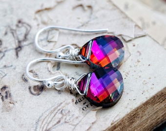A pair of earrings with a heart-shaped, multicolored glass pendant is displayed on a textured background. The earrings are connected to a silver earring hook and have a silver chain that passes through the heart-shaped pendant. The background features a vintage, handwritten text and doodles, giving the image an artisti... | Drop Earrings, Crystal Earrings, Crystal Jewelry, Swarovski Crystal, Dangle Earrings, Wire Wrapped, Sterling Silver, Volcano, Lava | 1a152ebc053bfb33e452c6e1690119ede0ab02292aa06f10180138e5f23ff377 | 000720983504 | 0 | 0 | 53 | 16 | 0 | 0 | |