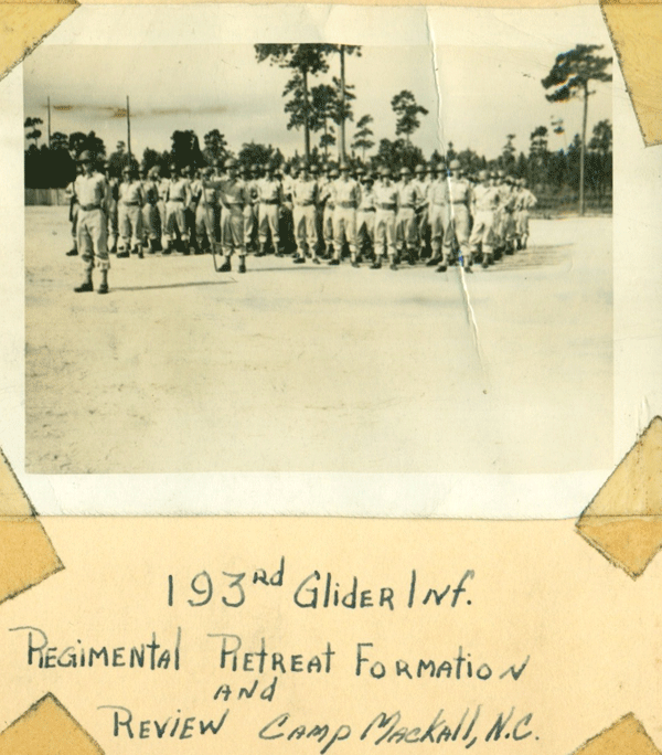 A vintage photograph of a group of men in uniforms standing in a line on a baseball field. The photograph is in black and white and has a torn corner on the right side. The men are wearing baseball uniforms and are holding baseball bats. The photograph is captioned '193rd GLIDER INF. REGIMENTAL RETREAT FORMATION AND CA... | 193rd Regimental Retreat Formation | ec5f54ac612ce0d2bee3c4191abdcad852000cbce89c0adfebb666833a8a14cc | 000720983423 | 0 | 0 | 59 | 4 | 0 | 0 | |