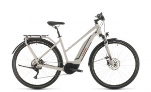 A white electric bicycle with a black seat and handlebars is displayed against a white background. The bicycle has a black front wheel and a black rear wheel with a black tire. The frame of the bicycle is white, and there is a black motor attached to the rear wheel. The bicycle has a black kickstand and a black pedal. | Cube Touring Hybrid Pro 500 grey\xc2\xb4n\xc2\xb4red 2020 Trapez | 8d7cbed9efa511163d85b02648fb18e27dd0daad60d2b1c7b36d8ee0fe5f40bb | 000720984794 | 0 | 0 | 60 | 8 | 0 | 0 | |