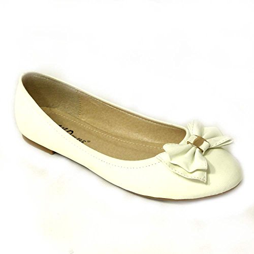 A white flat shoe with a bow detail on the toe and a brown sole is displayed against a white background. | SKOS , Damen Ballerinas White (t11-15) | 08b1bdc13287183dbcb85c06a46fe5a3d78777a63f8362df119092193b87f332 | 000720984788 | 0 | 0 | 21 | 6 | 0 | 0 | |