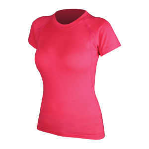 A mannequin wearing a pink t-shirt with a crew neck and short sleeves. The t-shirt is plain and has a smooth texture. The mannequin is positioned against a white background, and the image is taken from a front view. | Endura Women's BaaBaa Merino SS Cycling Base Layer | 7102b2404d4fe9aeea55f74c841603d435385098880242d7ba68851a939764ee | 000720985103 | 0 | 0 | 39 | 8 | 0 | 0 | |