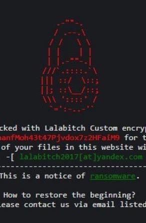 A computer screen displaying a red lock icon with a black background. Below the lock icon, there is a message in a monospaced font that reads 'locked with LaBitch custom encrypt'. The message continues with 'for the files in this website with the following files in this website with the following files in this website ... | 2016 Open-Source Repo Continues to Fuel the PHP Server Ransomware Scene Image | 13a0b1dafb4f86b7d540e7d2756d1963b5ccc807a16b0d7e64358bec8c42b4d4 | 000720985084 | 0 | 0 | 119 | 12 | 0 | 0 | |