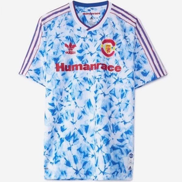 A white and blue football jersey with a floral pattern and the word 'HUMARACE' on the chest. The jersey has a red Adidas logo on the left chest, a red and blue Adidas logo on the right sleeve, and a red and blue Adidas logo on the back of the collar. The jersey also features a red and blue Adidas logo on the right chest. | Maglia Manchester United Human race | 177d5250f60390a6b93f15cae01da984b66ab60a27b69d2189026843c991d5c5 | 000720932486 | 0 | 0 | 65 | 5 | 0 | 0 | |