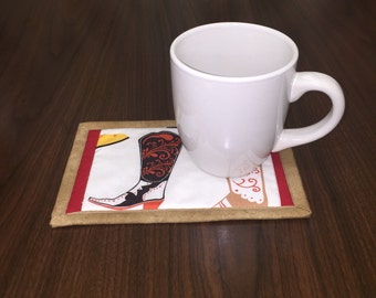 A white ceramic mug filled with a dark liquid sits on a wooden table next to a coaster with a colorful illustration of a leg with a red pattern and a bird. | Mug Rug | a937d9b68accfebf63a909afed403390eaee581653c3d49f75460fd33e437af5 | 000720932498 | 0 | 0 | 32 | 2 | 0 | 0 | |