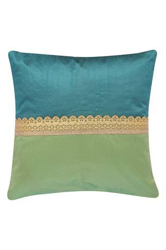 A teal pillow with a white lace trim on the bottom edge is displayed against a white background. | IVY - Green Mix\xc2\xa0Cushion Covers - Main | 165bf5c256347207431aa549f2ab67483804afff8eda543ee29d19dd1ee22c4c | 000720932450 | 0 | 0 | 18 | 7 | 0 | 0 | |