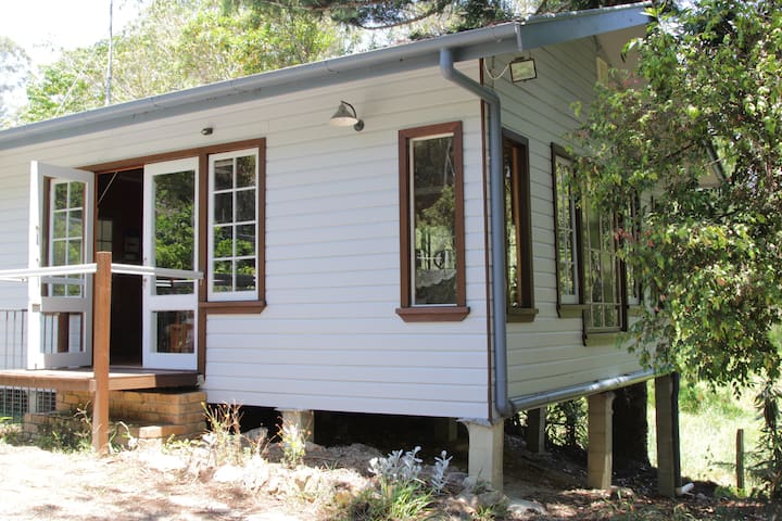 A small, white, one-story house with a brown roof is surrounded by lush greenery. The house has a porch with a railing and a wooden post, and there is a small window with a white frame. The ground is covered with grass and small plants, and there is a wooden fence in the background. | Lovely studio in Tweed Valley - Stokers Siding - Stuga | db5e92b64bdd9f58e722054453e88d41b5ef0578a18032bea76eeead2cb751b0 | 000720985302 | 0 | 0 | 54 | 10 | 0 | 0 | |