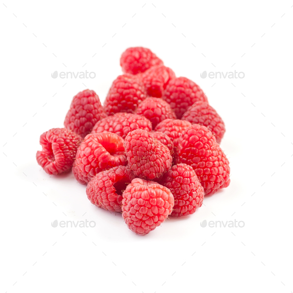 A collection of ripe red raspberries is displayed against a white background. The raspberries are of various sizes and are densely packed, with some overlapping each other. The image has a watermark in the top left corner that reads 'enVato' and 'enVato' in the bottom right corner. | A handful of ripe raspberries on a clean white background. - Stock Photo - Images | 674bd5741d68743723798448389f158f2e6b462191f01992374d3b38fa83cfb7 | 000720985298 | 0 | 0 | 47 | 15 | 0 | 0 | |