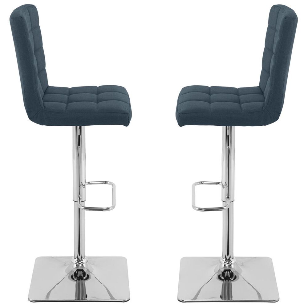 A pair of modern bar stools with a shiny chrome base and a blue cushioned seat and backrest. | CorLiving Adjustable Square Base Barstool in Dark Blue (Set of 2), , large | 859fca49c04ab67e52f787a7d6efdfa51ec504f5cdb91df053476e6394ae0320 | 000720984483 | 0 | 0 | 18 | 13 | 0 | 0 | |