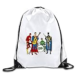 A white backpack with a cartoon character design featuring a superhero, a drummer, and a guitarist. The superhero is in the center, with a red cape and a blue suit with a red 'S' emblem. The drummer is on the left, wearing a red and white striped shirt, and the guitarist is on the right, wearing a black suit with a yellow 'B' emblem. The background is a plain white color. | Kamici Justice Rock Band League Drawstring Backpack Training Gymsack Gym For Men & Women | 7413557dc11f934acb37a6099fa5b18ca2b20d5dc72807fdc1a1788286dbe3ba | 000720932683 | 0 | 0 | 71 | 14 | 0 | 0 | |