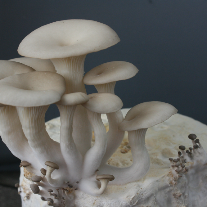 A collection of white, mushroom-like fungi with smooth caps and stems, growing on a white, rocky surface. The mushrooms vary in size, with the largest one in the center and smaller ones around it. The background is a plain, light grey wall. | Grow Oyster Mushrooms with a TeePee Kit | c1bc16ed512adb8d6ec70a6e1f35c6a1d8c77457f5afc17ce39ab7f2b36c8fc2 | 000720932613 | 0 | 0 | 42 | 7 | 0 | 0 | |
