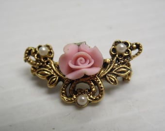 A close-up image of a vintage brooch featuring a pink rose with a few petals missing, surrounded by intricate gold filigree and white pearls. The brooch is placed on a white surface with a soft focus background. | Goldtone Porcelain Fashion Curved Bar Brooch Pin | e0fb1ab6469635a37e0a26220c4879e23a6d0dc6fdf449b20c03fb80cce3fa92 | 000720933395 | 0 | 0 | 37 | 7 | 0 | 0 | |