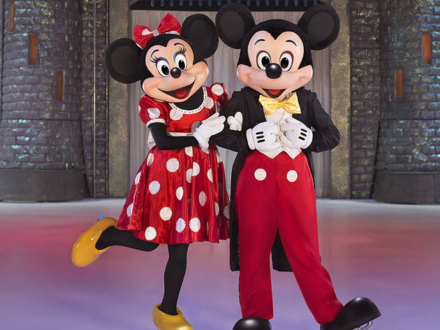 Two Mickey Mouse characters are standing next to each other. The character on the left is wearing a red dress with white polka dots and yellow shoes, while the character on the right is wearing a red suit with white polka dots and black shoes. Both characters have black gloves and are wearing black shoes with white soles. | Disney On Ice celebrates 100 Years of Magic | f17754826e1822954b80e984941eacd79d43c342834efc51313d14f05804135d | 000720933270 | 0 | 0 | 58 | 8 | 0 | 0 | |