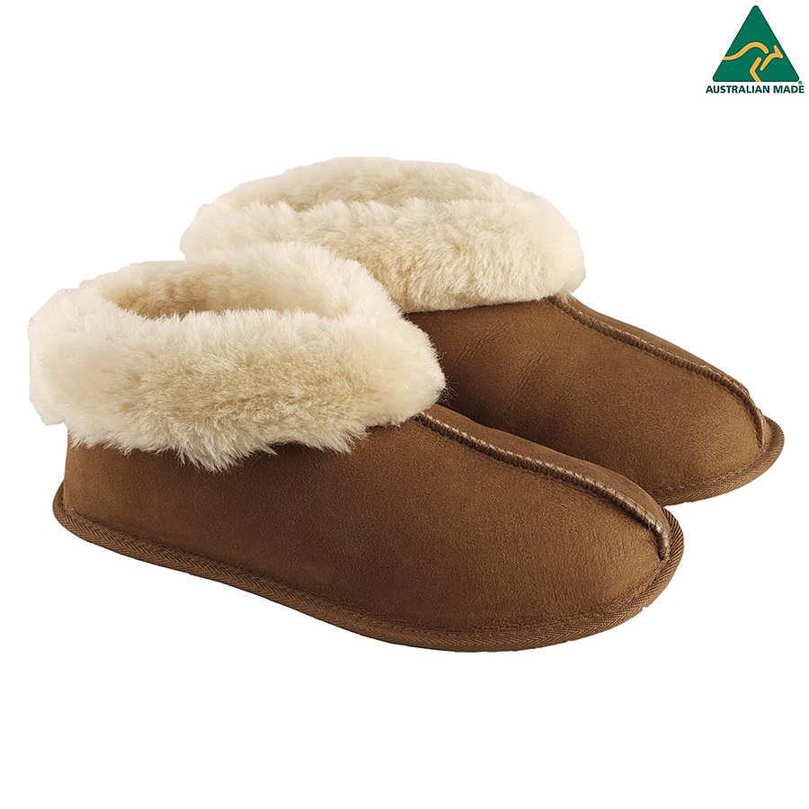 A pair of brown slippers with fluffy white fur on the top is displayed against a white background. The slippers have a soft, suede-like texture and a ribbed sole. The Australian Bank logo is visible in the top right corner. | Soft Soled Slipper - Image 1 | 103c326cf0b62e3c5389041197fcbfee14e2af0fc1ee126624781108c79874a1 | 000720933828 | 0 | 0 | 40 | 6 | 0 | 0 | |