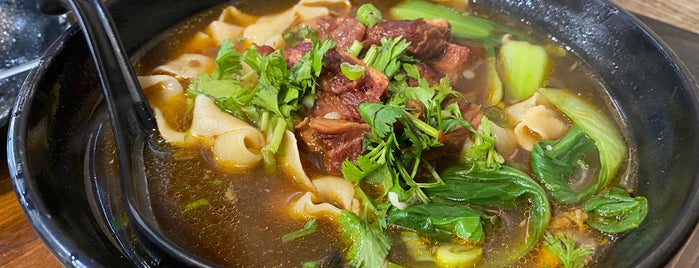 A bowl of noodles with meat and vegetables, including green onions and spinach, is placed on a wooden surface. The bowl is black and has a spoon resting on the rim. The noodles appear to be a type of Asian noodle, and the dish has a rich, savory broth. | The Magic Noodle is one of Las Vegas Eats. | b1833dc61df1751b81269dfeaa52288b73713f1085d7d48e9df14671ee7435f8 | 000720933843 | 0 | 0 | 49 | 9 | 0 | 0 | |