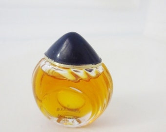 A small, round perfume bottle with a black cap and a yellow liquid inside. The bottle is placed on a white surface, and the cap is positioned at an angle, giving the impression that the bottle is leaning slightly to one side. | Boucheron Mini Bottle Eau de Parfum Splash Perfume | c62488b917ef103e931effc8287079249cfd8ab30aba1611744cbe0793280b4c | 000720936204 | 0 | 0 | 42 | 8 | 0 | 0 | |