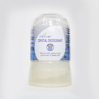 A bottle of Crystal Deodorant by Eucerin is displayed against a white background. The bottle has a blue label with white text and a logo. The label lists the product name, 'Crystal Deodorant', and the brand name, 'Eucerin'. The label also includes a list of ingredients and a statement about the product being 'infused with antiseptic protection of Eucerin Oil'. The bottle itself is clear, showing the white liquid inside. | Elemie Crystal Deodorant 45g | f00dde232fd087dd64a8b8ef667bfb9d4b81a56a2c0efb48481d749eaddd712d | 000720936103 | 0 | 0 | 70 | 4 | 0 | 0 | |
