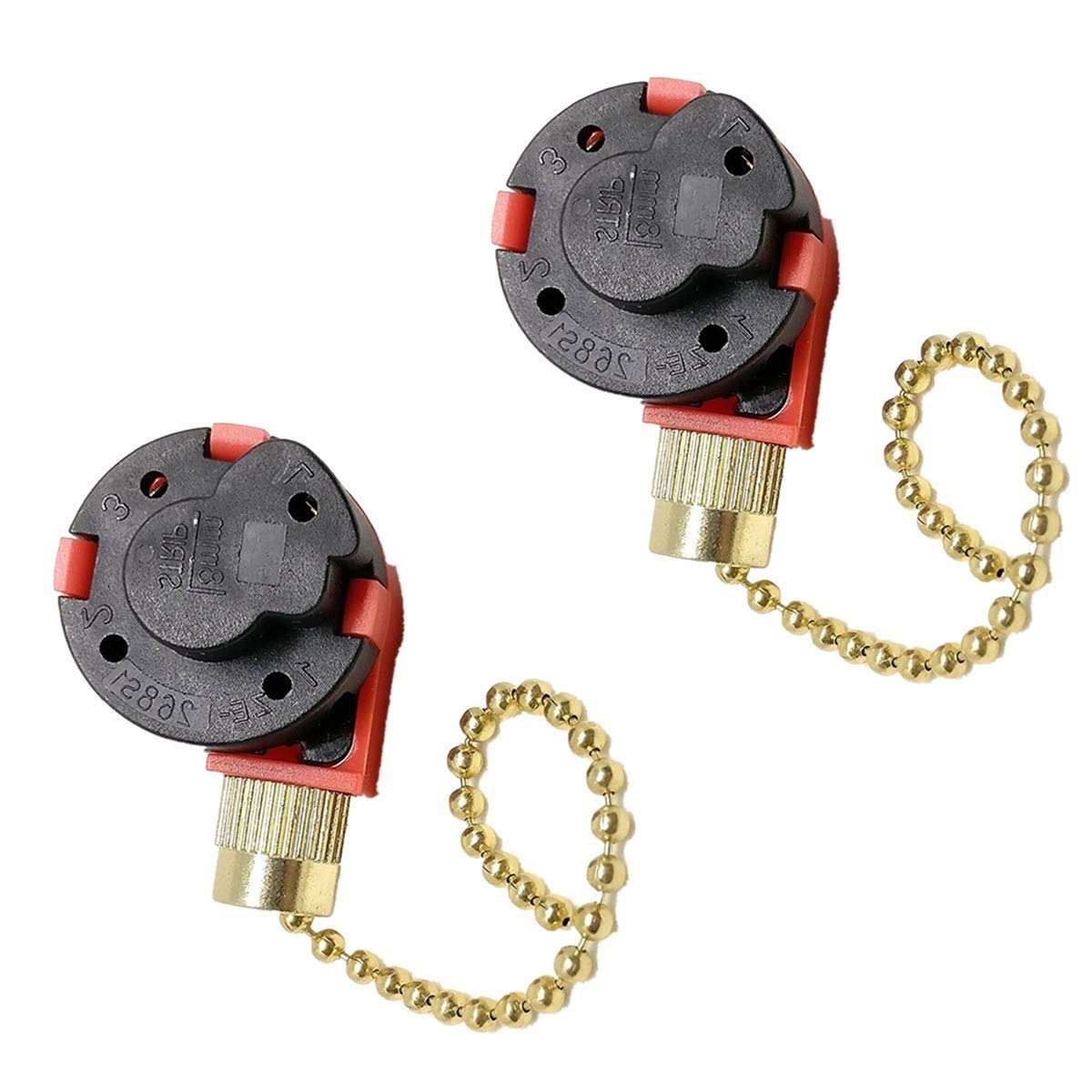 A pair of black and red earphones with gold-colored earbuds and a gold chain is displayed against a white background. | 2PCS Ceiling Fan Switch Zing Ear ZE-268S1 3 Speed 4 Wire Pull Chain Control for Ceiling Fans, Lamps and Wall Lights (Brass) | 143a632dcb503473e728882b39a6835121bf2a0460306708957f44c58e5211c1 | 000720936444 | 0 | 0 | 20 | 22 | 0 | 0 | |