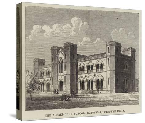 A sepia-toned illustration of a large, ornate building with multiple arched windows and a prominent clock tower. The building is surrounded by a grassy area with a few trees and a horse-drawn carriage in the foreground. The sky is filled with clouds, and the overall image has a vintage, historical feel. | The Alfred High School, Kattywar, Western India--Stretched Canvas Print | ea0e8cca396c150740fa2b0d604efb6022df450053ce1e44da5ecf518325a06a | 000720936487 | 0 | 0 | 51 | 9 | 0 | 0 | |