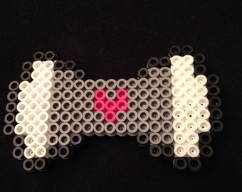 A pixel art representation of a video game controller, specifically a Nintendo Wii remote, is displayed. The controller is made up of small, square pixels in various colors, including white, black, and red. The pixels are arranged to form the shape of the controller, with the red pixels forming the 'A' button and the white pixels forming the 'B' button. The controller is set against a black background, which is also composed of pixels. | Companion Cube bow | 341b1cda58b50e507d4c3bf48bc07d66b09d8403e3753514af03775203c22774 | 000720936640 | 0 | 0 | 74 | 3 | 0 | 0 | |
