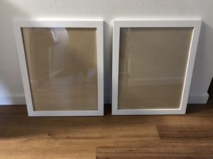 Two empty picture frames are leaning against a white wall on a wooden floor. The frames are identical, with a beige mat inside and a white border around it. The frames are positioned side by side, with the left frame slightly overlapping the right one. | White frames for Sale in Poulsbo, WA | 3726949ad94bee786cbb6e11229834c06c8e25a179a52b69b76615dd5c912b1b | 000720936811 | 0 | 0 | 45 | 7 | 0 | 0 | |